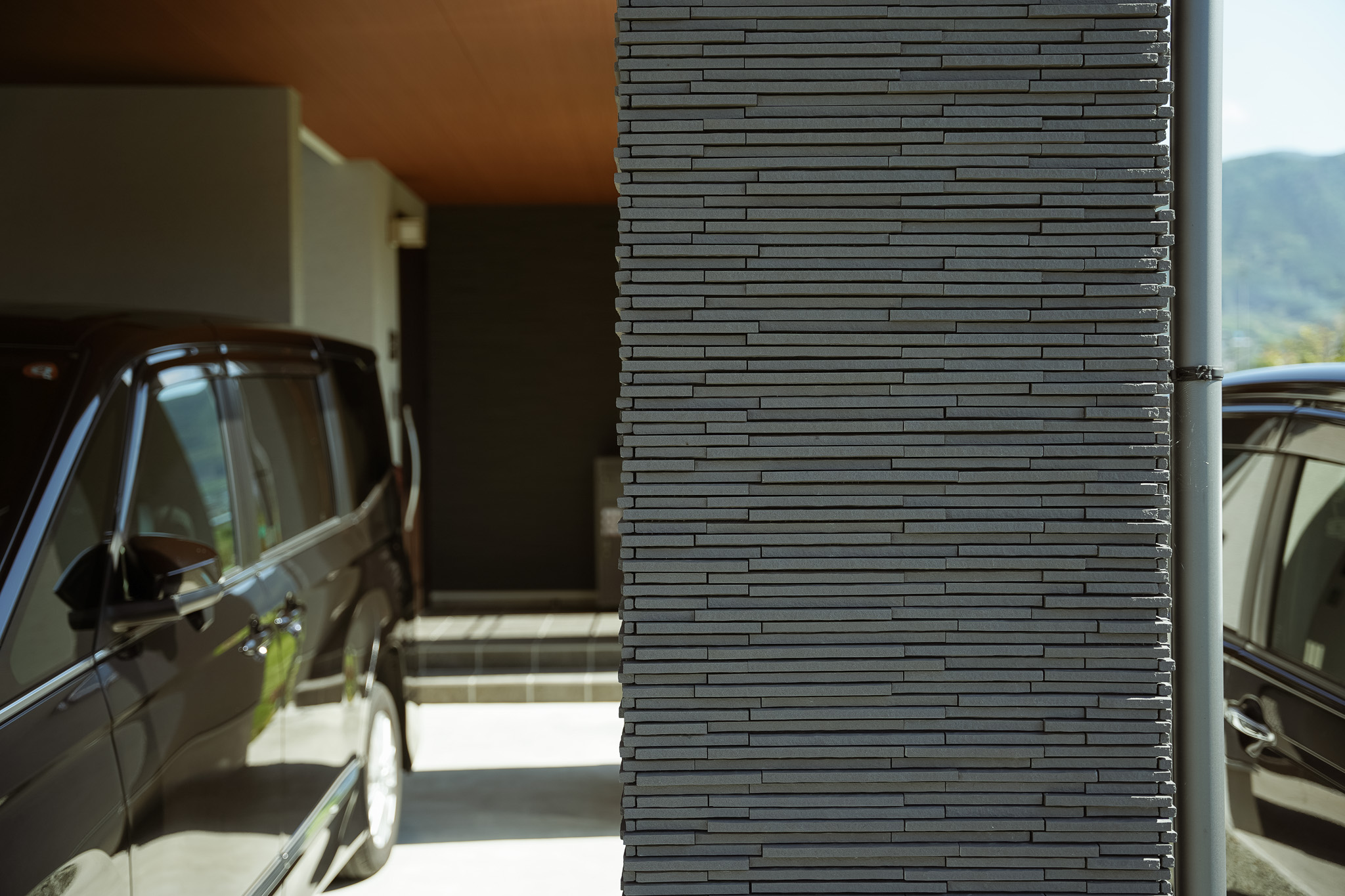 はい。この家は、城下町の松代という立地なので、「和」の要素を融合させつつ、個性を表現したかったんです。山並みと調和するよう、外壁の色や屋根の瓦の色には特にこだわりました。若い人で瓦を選ぶのは珍しいと思うけど、街の景観にも合っていてすごくかっこいい。今では、この特徴的なデザインが地域のランドマーク的な存在になっているとも感じています。「銀黒」という黒い瓦を選んだんですが、街の景観にも馴染んでいますし、タイルの「千陶彩」も非常に気に入っています。