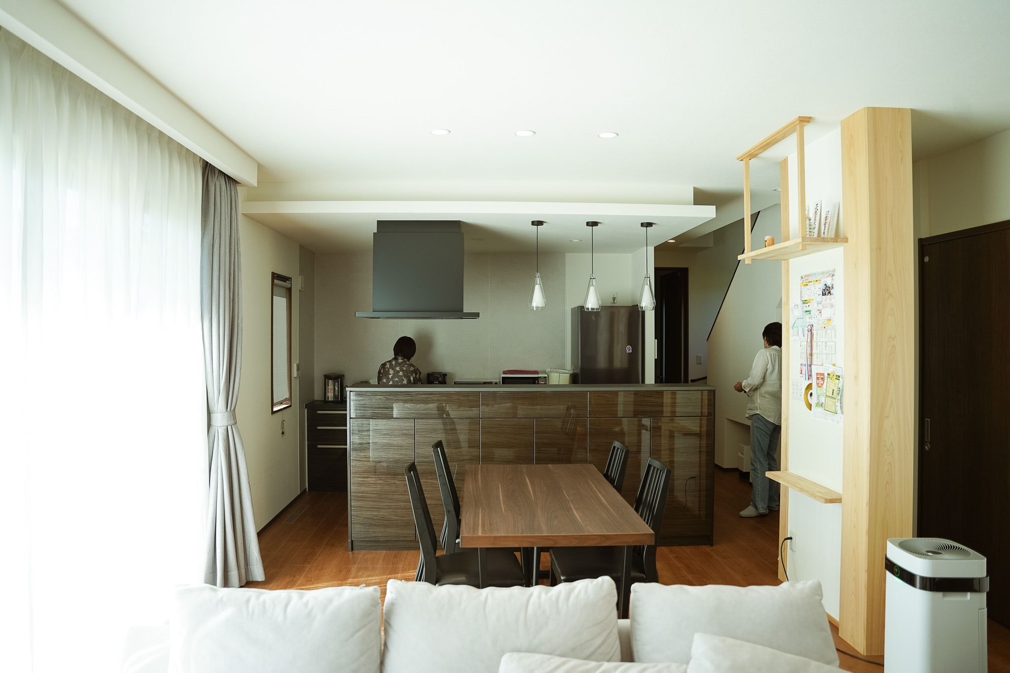 空間を仕切らないオープンな間取りのおかげで、家族が自然とリビングに集まり、常に一緒にいられる感覚があります。また、空調にも色々な工夫をしてくれたおかげで快適に過ごせてうれしいですね。